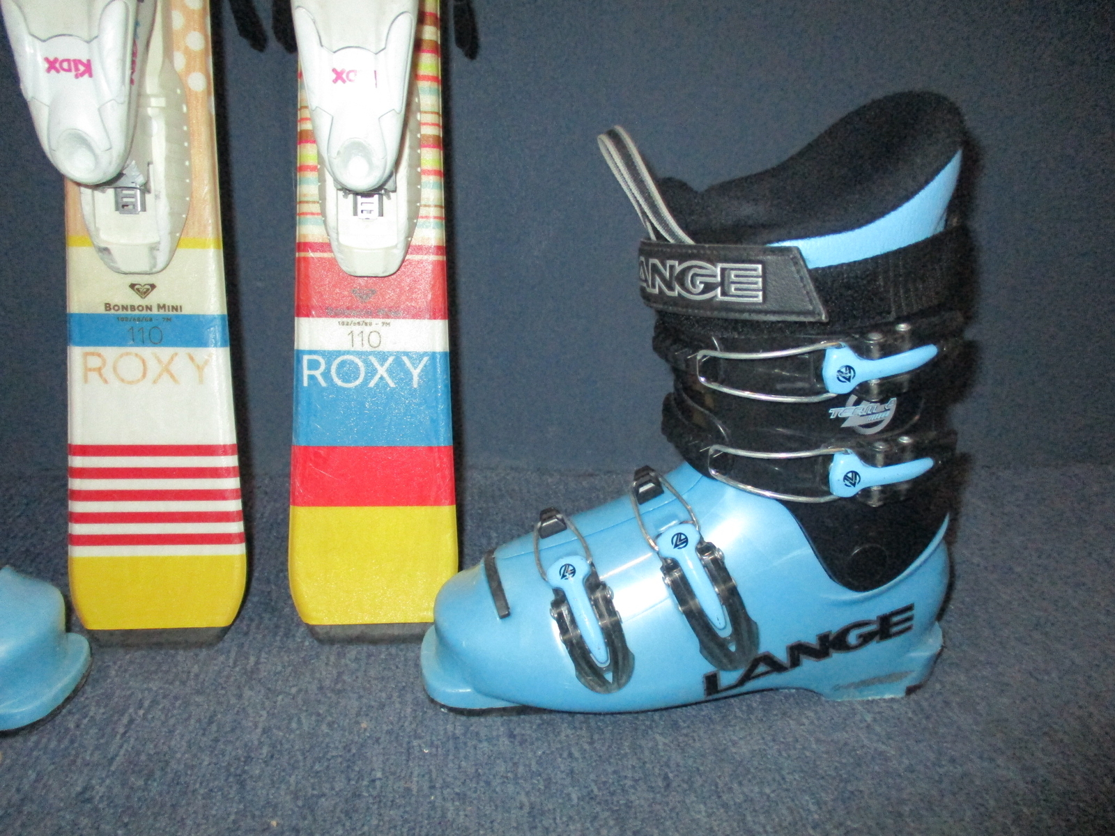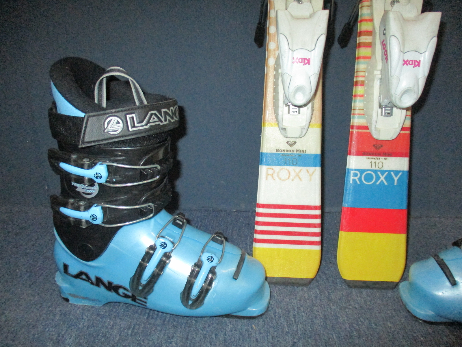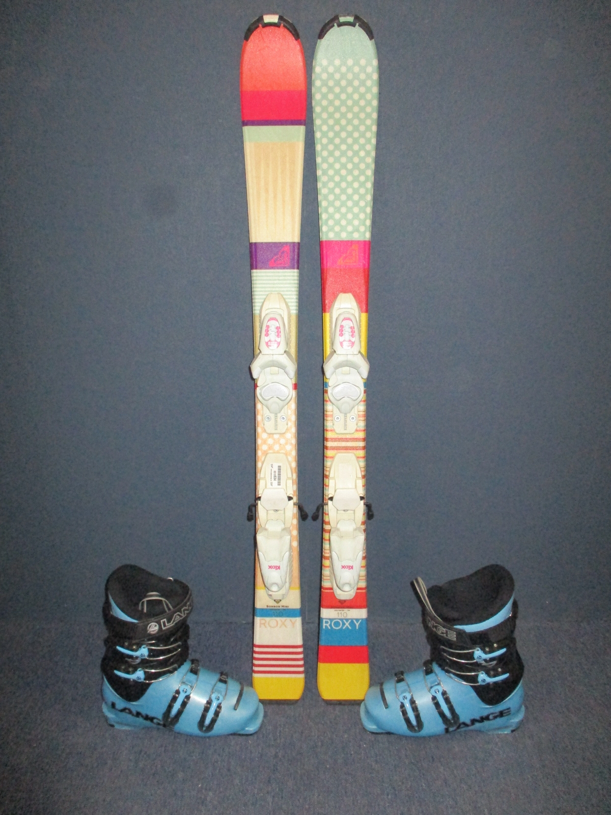 Cena je za komplet. Záruka 1 rok.10711. Dětské carvingové lyže ROXY BONBON MINI 110cm, lyže jsou po servisu skluznic, radius 7m, kompozitové jádro + sklolaminát, konstrukce cap + lyžáky LANGE TEAM 8 stélka 22,5cm, 3x přezka, flexindex 50. VÝBORNÝ STAV