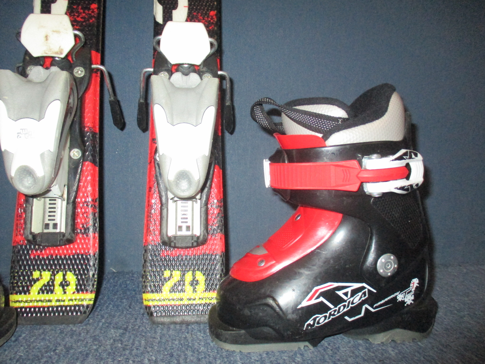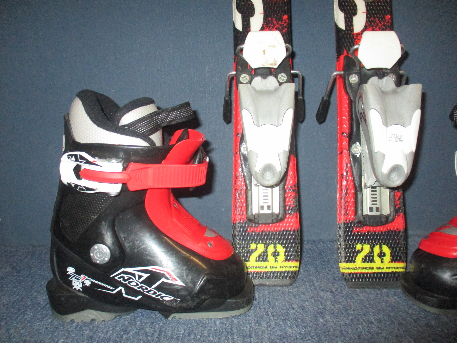 Cena je za komplet. Záruka 1 rok.10618. Dětské carvingové lyže ATOMIC REDSTER 70cm, lyže jsou po servisu skluznic, radius 3,5m, kompozitové jádro + sklolaminát, konstrukce cap, hadí povrch + lyžáky NORDICA FIREARROW TEAM 1 stélka 15,5cm, 1x ozubený utahovací pásek, flexindex 40. SUPER STAV