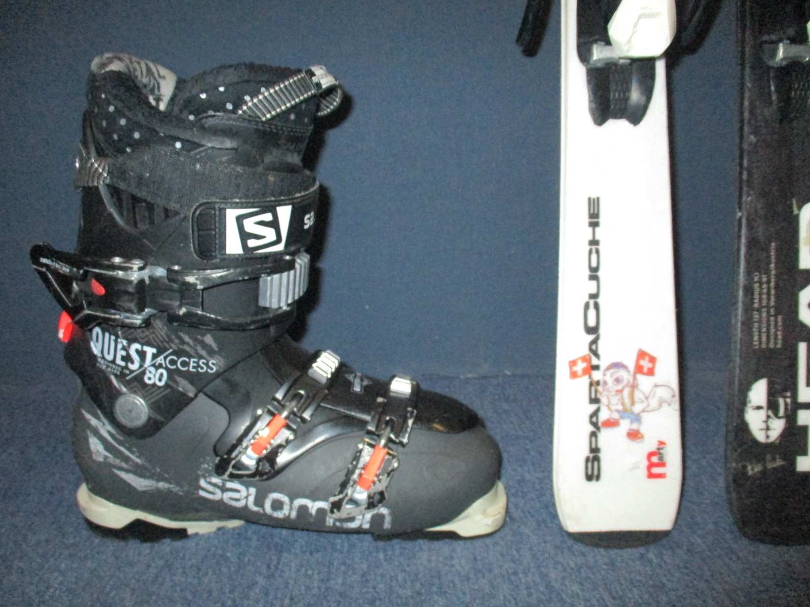 Cena je za komplet. Záruka 1 rok.10497. Juniorské carvingové lyže HEAD SPARTA CUCHE 137cm, lyže jsou po servisu skluznic, radius 11m, krojení 104 - 65 - 91, kompozitové jádro + sklolaminát, konstrukce cap + lyžáky SALOMON QUEST stélka 27cm, 3x přezka (2x mikro + 1x makro dotažení), flexindex 70, VÝBORNÝ STAV.