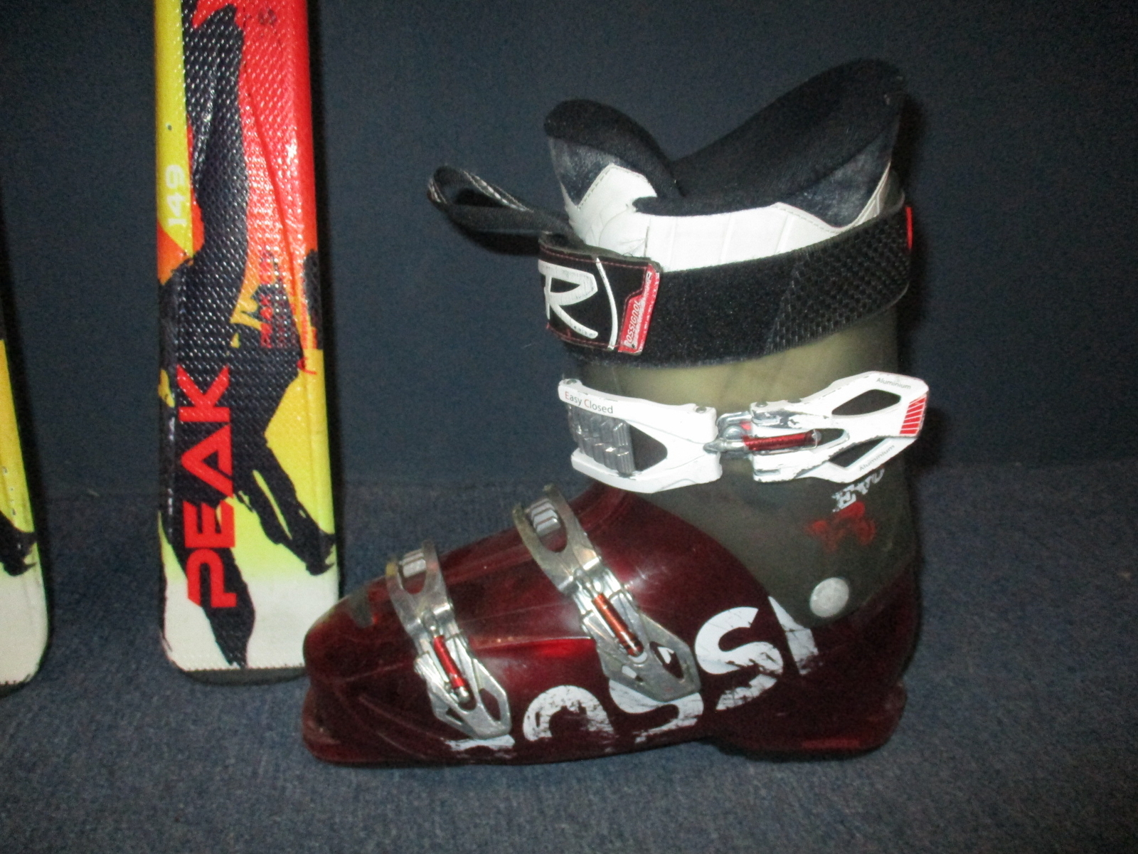Cena je za komplet. Záruka 1 rok.10684. Juniorské carvingové lyže HEAD PEAK ONE 149cm, lyže jsou po servisu skluznic, radius 11,5m, jádro syntetic core + sklolaminát, konstrukce full power cap, hadí povrch + lyžáky ROSSIGNOL EVO stélka 27cm, 3x mikro přezka, makro dotažení, flexindex 80, VÝBORNÝ STAV