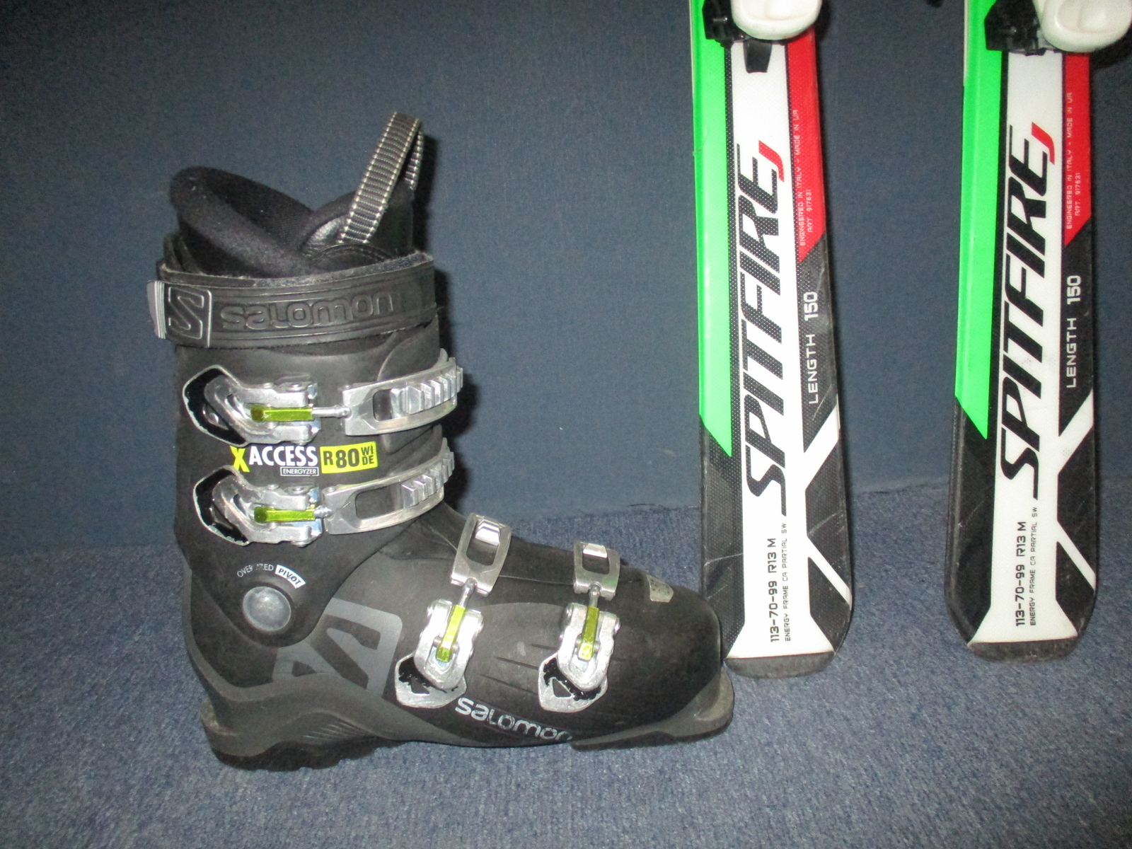 Cena je za komplet. Záruka 1 rok.10683. Juniorské carvingové lyže NORDICA DOBERMANN SPITFIRE 150cm, lyže jsou po servisu skluznic, radius 13m, lehké dřevěné jádro + sklolaminát, konstrukce energy frame, hadí povrch + lyžáky SALOMON X-ACCESS stélka 27,5cm, 4x mikro přezka, makro dotažení, canting, flexindex 80, VÝBORNÝ STAV